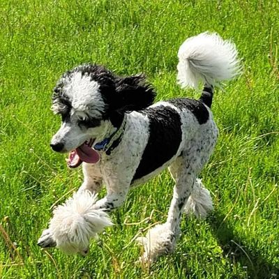 Cash is an AKC moyen sized tri color poodle. He’s about 16.5” and 22#. He is an absolute bundle of joy - a total character that keeps us laughing all the time! He is a quiet dog and rarely barks. He adores all his furry companions and doesn’t have a mean bone in his body. He’s so goofy, he stares down our guests until they give in and let him curl up in their lap! Everyone ends up with laughs and smiles. Cash loves to play ball and with all tug toys and he is forever sneaking them outside. He loves to play with the other dogs. He is not a Velcro dog but he does love to curl up on his mama's lap. He’s the Perfect combination of cuddle bug and independence.